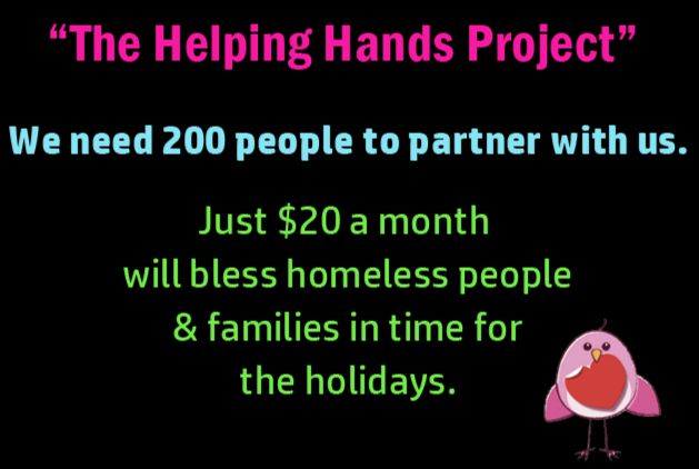Just $20 a month will help us complete this mission together. Please join us and become a Helping Hand. Together we can lift them up with a Helping Hand.